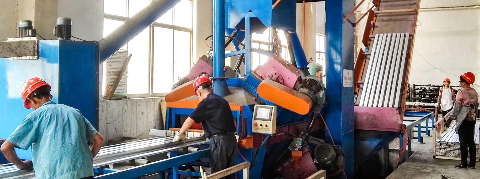 專(zhuān)業(yè)生產(chǎn)多種鋁合金型材及制品的企業(yè),已有二十多年的經(jīng)驗(yàn)和歷史。現(xiàn)有鋁型材擠壓設(shè)備四套,分別為1800T、1000T、630T、600T擠壓生產(chǎn)配套設(shè)備有10m長(zhǎng)不銹拋丸機(jī)。6m鋁型材表面拋光機(jī),4.5m普拉迪鋁材加工中心,多臺(tái)高精度自動(dòng)切割機(jī),雙頭轉(zhuǎn)向切割機(jī),備有12m長(zhǎng)時(shí)效爐。